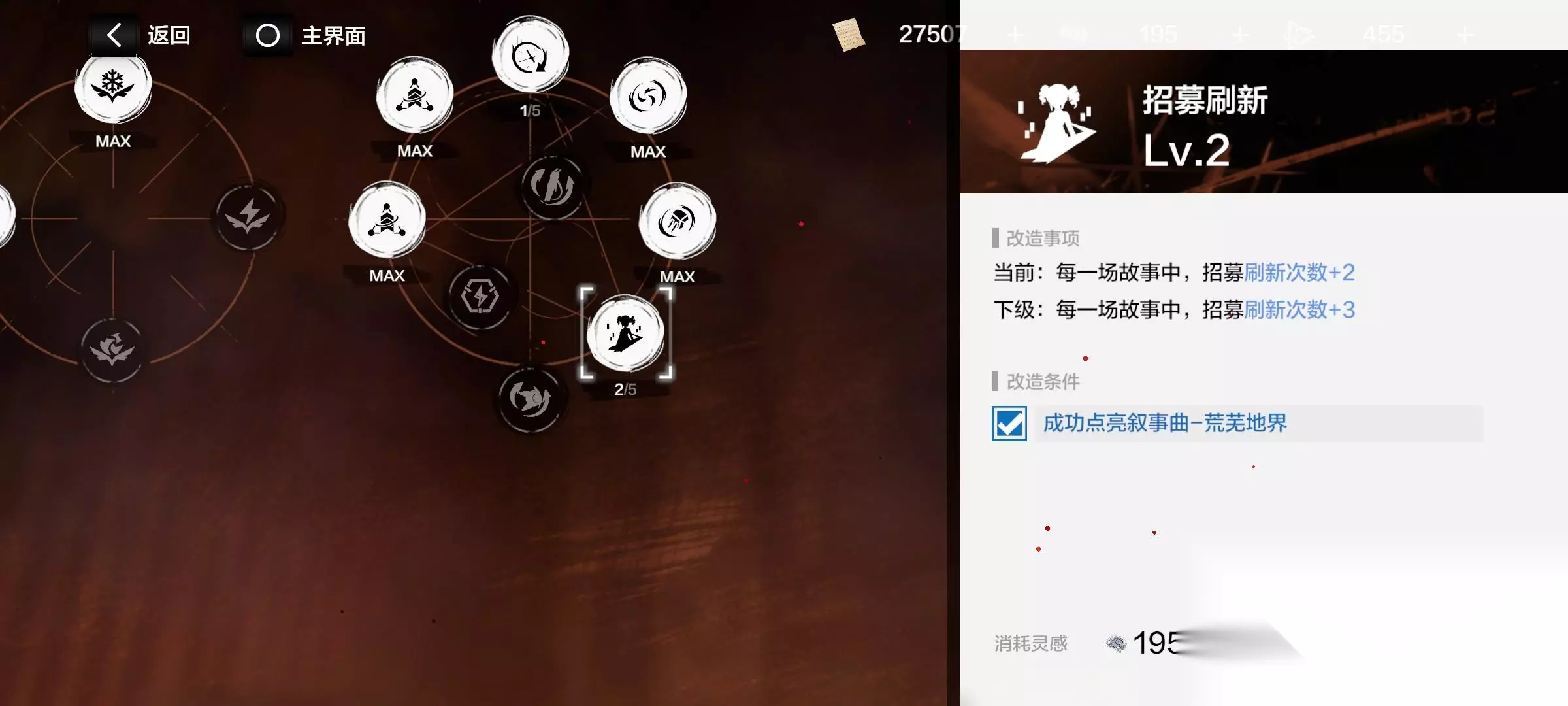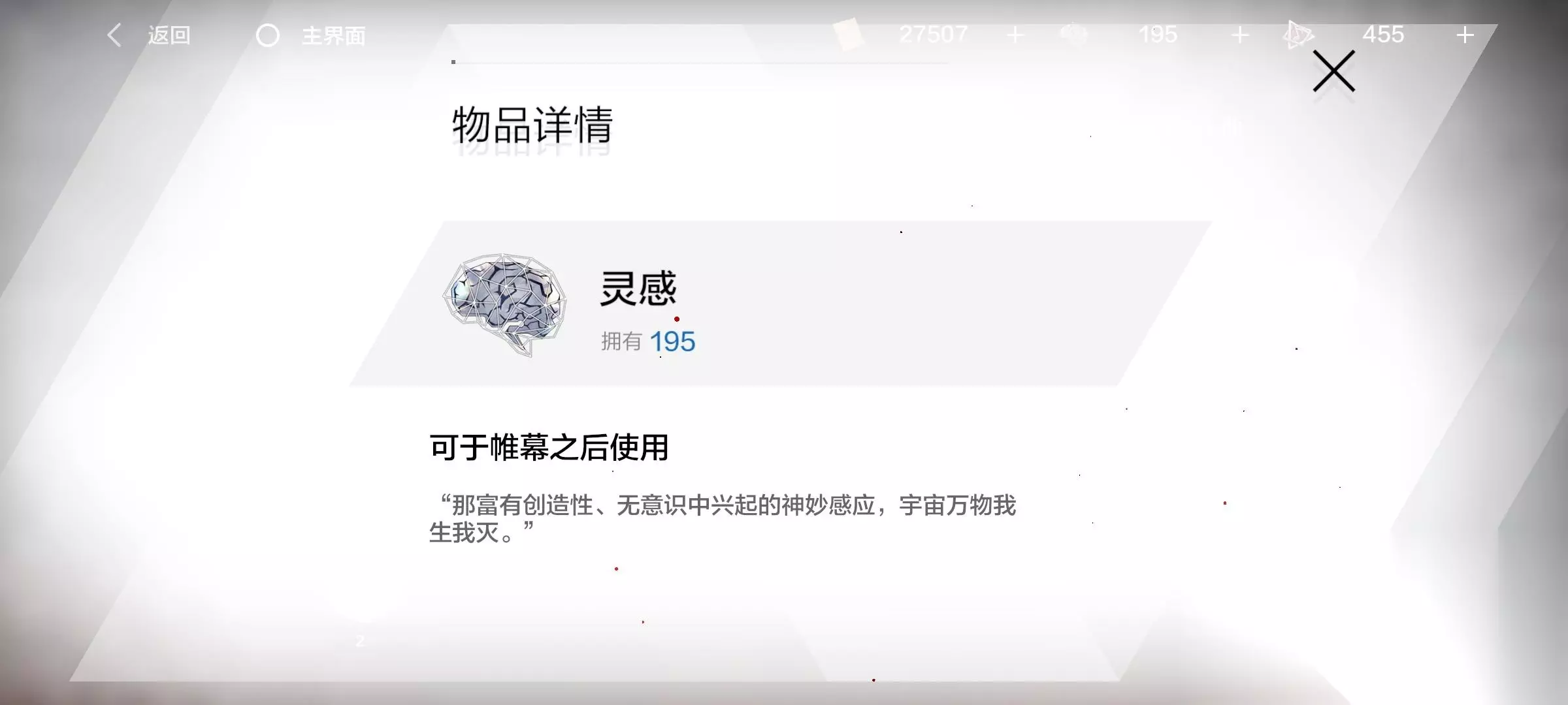 消耗材料“灵感”,用于能力提升,开启下一周目,解锁新结局。