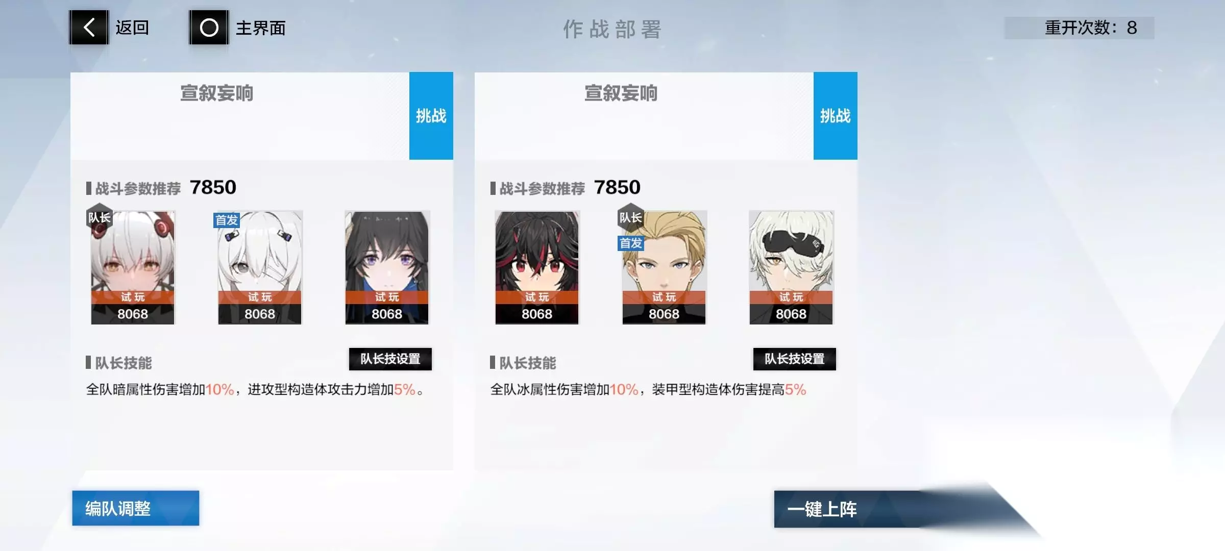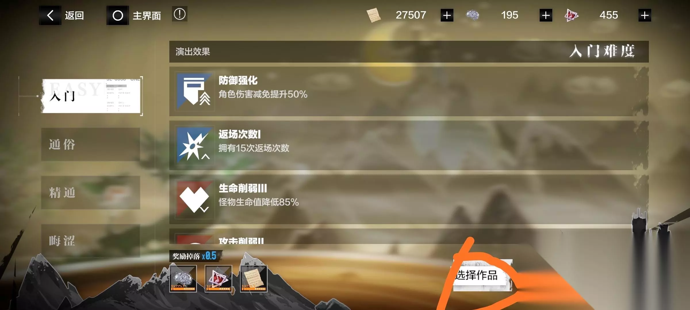 选择难度,有作品没满级的,记得带上升级,选定难度,开始游戏,进入游戏后选人,且刷新次数比每一场开始要多2次