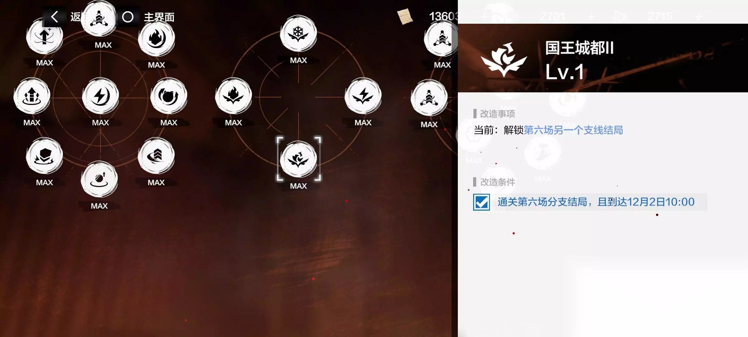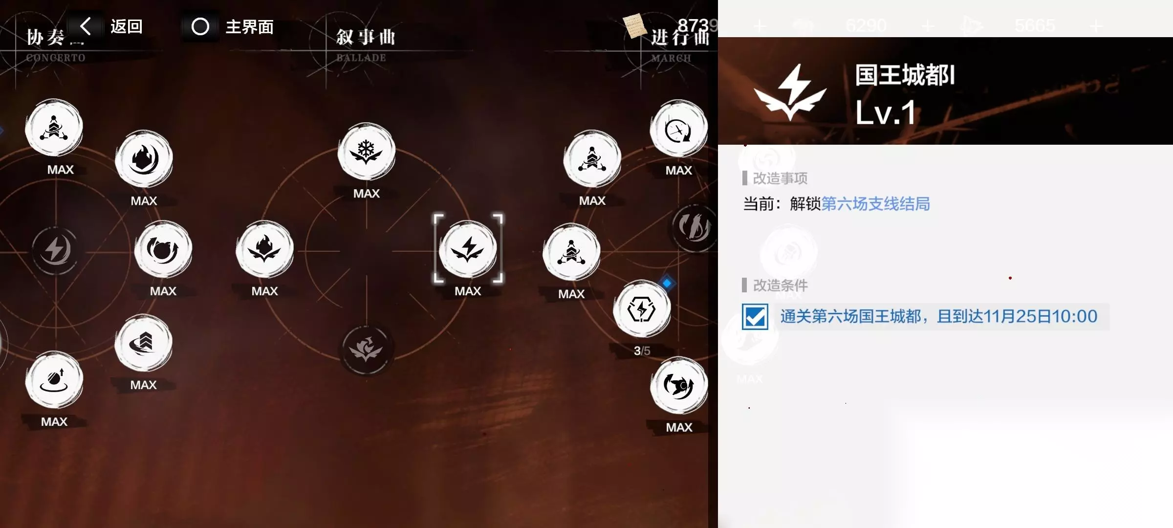 不知道结局怎么打的,记得把“叙事曲”的圆环点了 推荐升级(提升伤害,增加选人,商店方面)