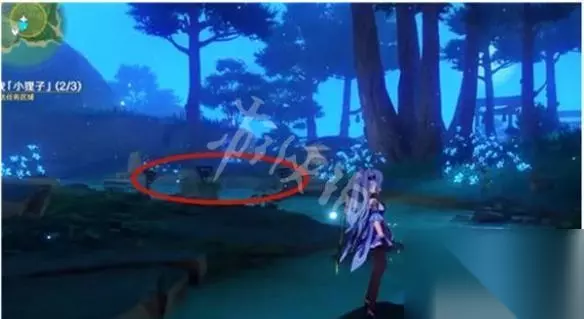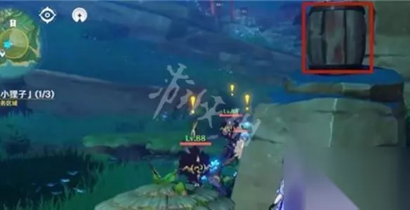 2、在下图中打破标记的地方,注意附近有一群丘丘人,然后调查之后就会发现吉法师;