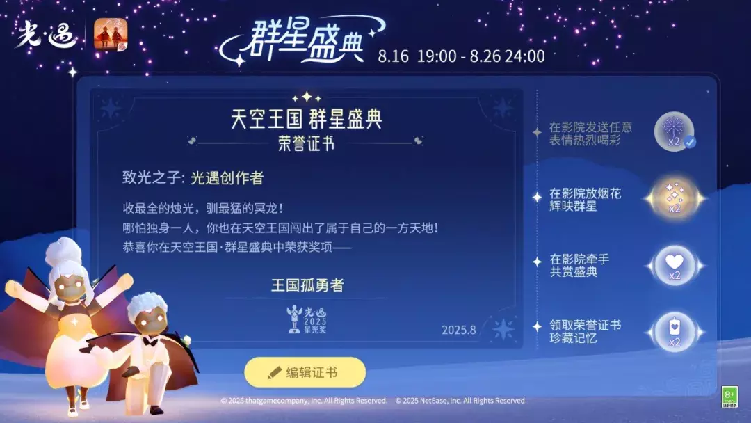 参与群星盛典并完成任务可获得对应奖励: