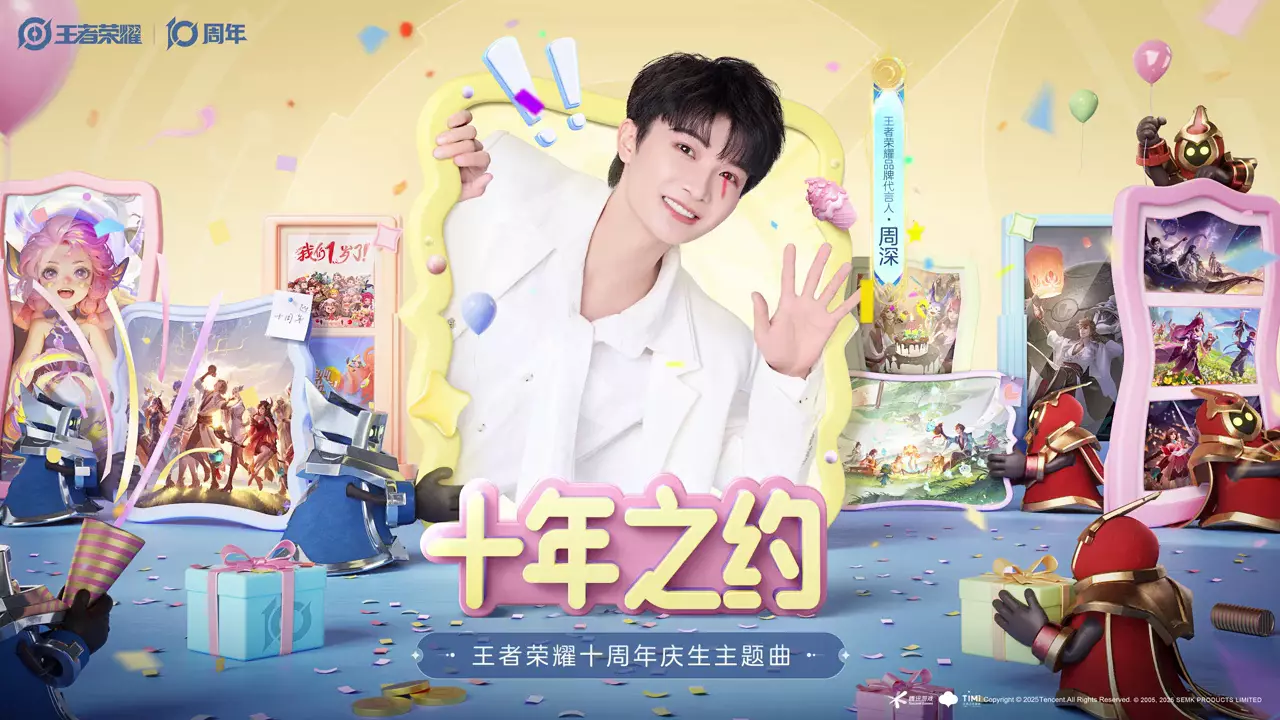 回复如今,这份共同的感动,将由一个熟悉的声音温暖传递——王者荣耀品牌代言人周将倾情献唱王者荣耀十周年庆生主题曲《十年之约》,定时10月23日0点,让我们在歌声中重逢…