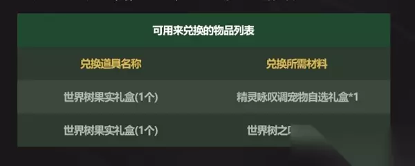 2、玩家还可以通过消耗精灵咏叹宠物自选礼盒以及世界树之叶文章礼盒来兑换。