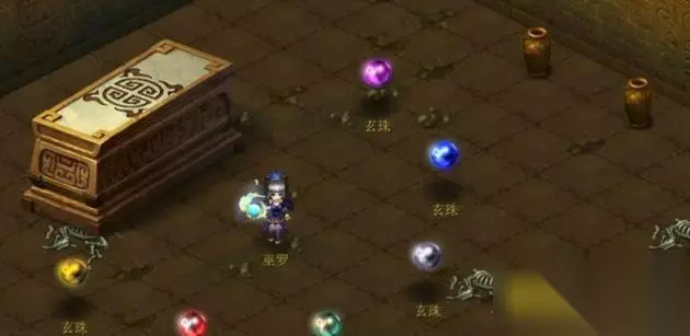 7、奇阵水晶石,进入玄武兽室左侧的门,找到水晶石阵。按“六妖出乱世至”的顺序点击水晶石。