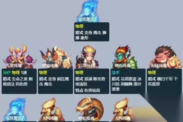 三、后室 1、六妖室,进入朱雀兽室下侧的门,找到阵盘。依次进入左、下、右侧的门,击杀3个残魂。残魂有六种:凿齿、九婴、大风、猰貐、修蛇和封豨,也就是所谓的六妖,玩家在每次副本中会遇到其中随机的三种。每个残魂附近都有一个祭台,因为前面做隐藏任务获得了储灵珠,点击祭台就可以镇压妖魔,直接挑战残魂。