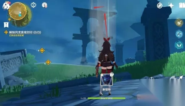 在这种情况下只需要沿着最左侧的山壁往前跑动,就可以直接从山壁的内部穿出来。继续往前移动就可以看到一个带有红色特效的机关,靠近之后点击屏幕中提示的传送锚点就可以直接进入到风龙遗迹种。利用这种方法不需要去做前面那些繁琐的收集任务就可以进入到遗迹中,从而节省相当一部分时间直接开启遗迹中的任务。