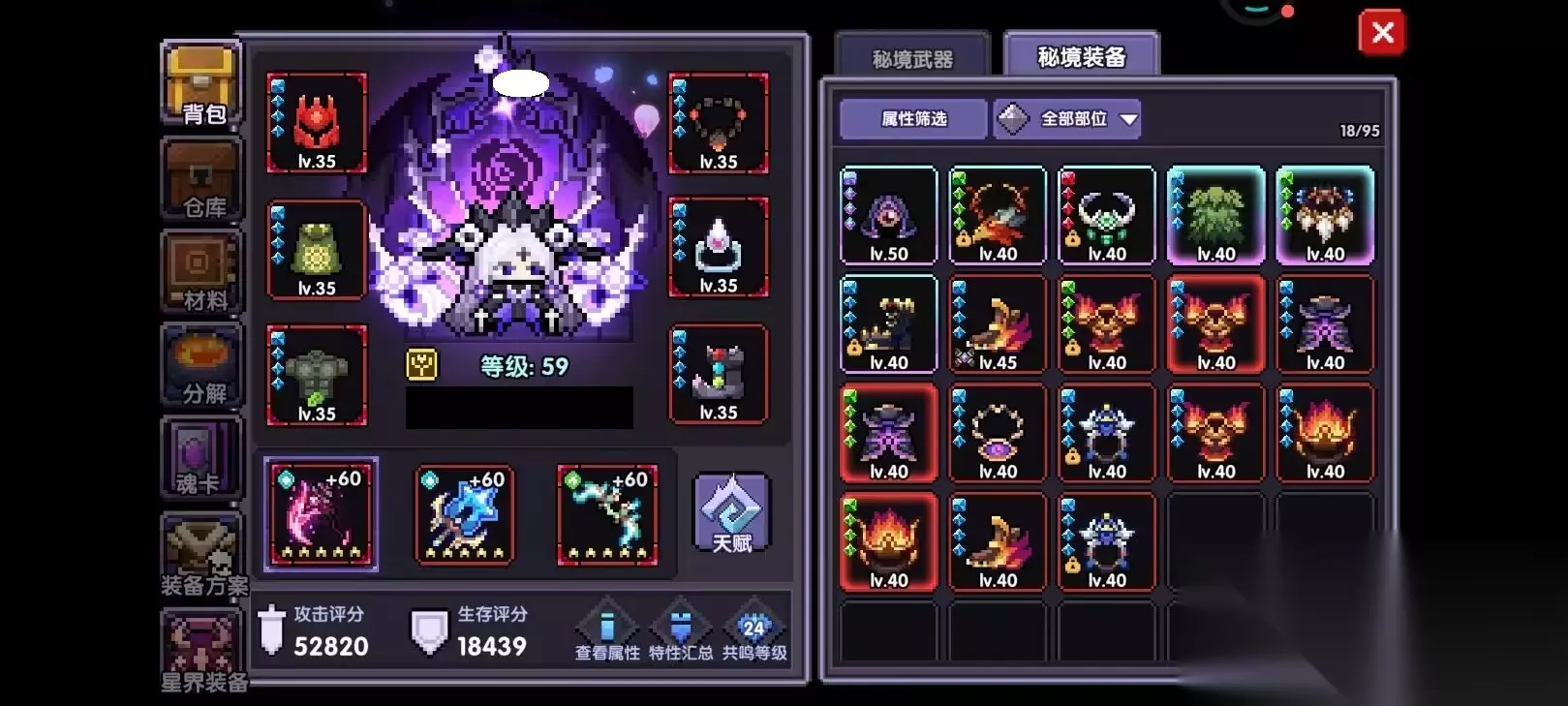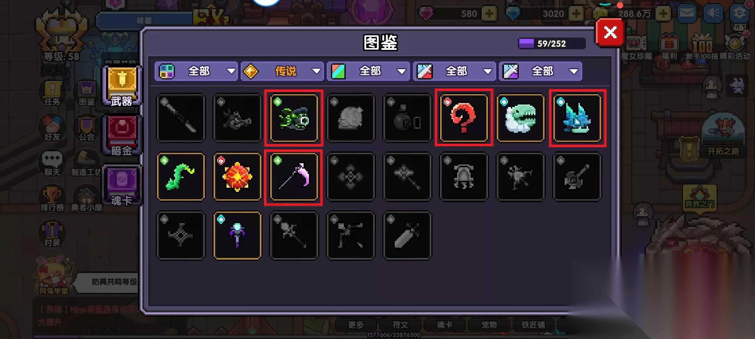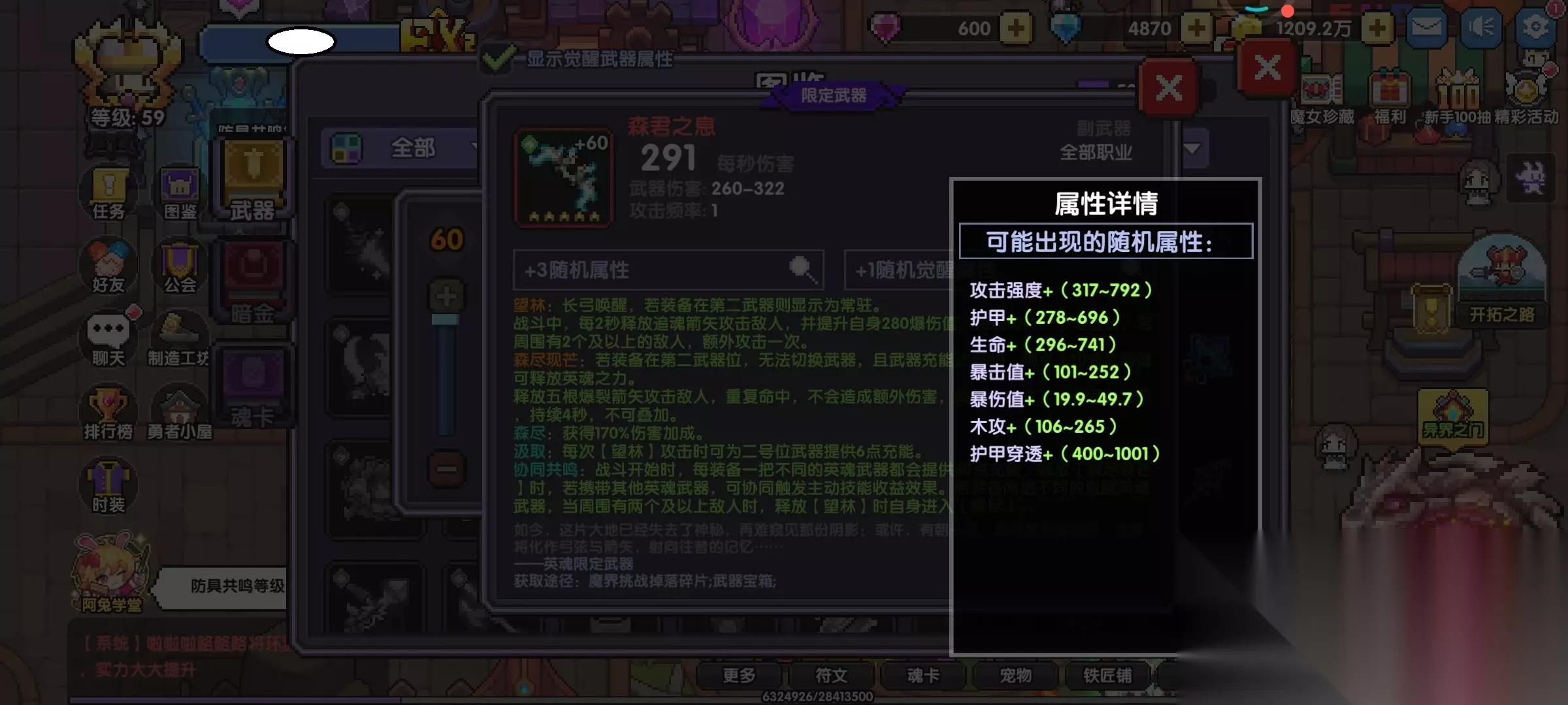 我的勇者【牧师】【褪羽·斯托拉斯】【萌新过渡新水】武器篇攻略20250503如下: 本篇攻略主要给刚玩几天的萌新的开荒资源选择引导,以及后续做新BD(抗争BD)的发展思路,废话不多说,我们直接开始吧! 攻略会以一下模块去开讲,因为篇幅较长,所以每个模块分篇去写,后面附上链接 一、【武器】 二、【技能】 三、【魂卡】 四、【防具】 五、【宠物】 六、【外装】 七、【星盘】 八、【宝石】 九、【符文】 十、【魂树】 十一、【魂系&魂珠】 十二、【资源获取】 一、【武器】 1、开局选择抽克罗塞尔的武器,五十抽就能保底。后面最多升到4星就够了,别升5星。 2、刚玩的前几天以推小秘境为主,武器属性优先选择带有护甲穿透的紫色、橙色武器(图1、图2),武器爆出来都先留着,留意看哪些带有护穿的,有护穿的就直接用它。副本中怪物的护甲、元素抗性、暴击抗性都可以在进副本前左下角可以看见(图3),前期这三者的属性都是很重要的,非常影响推图伤害,所以大家前期尽量都是往这三个属性去堆。