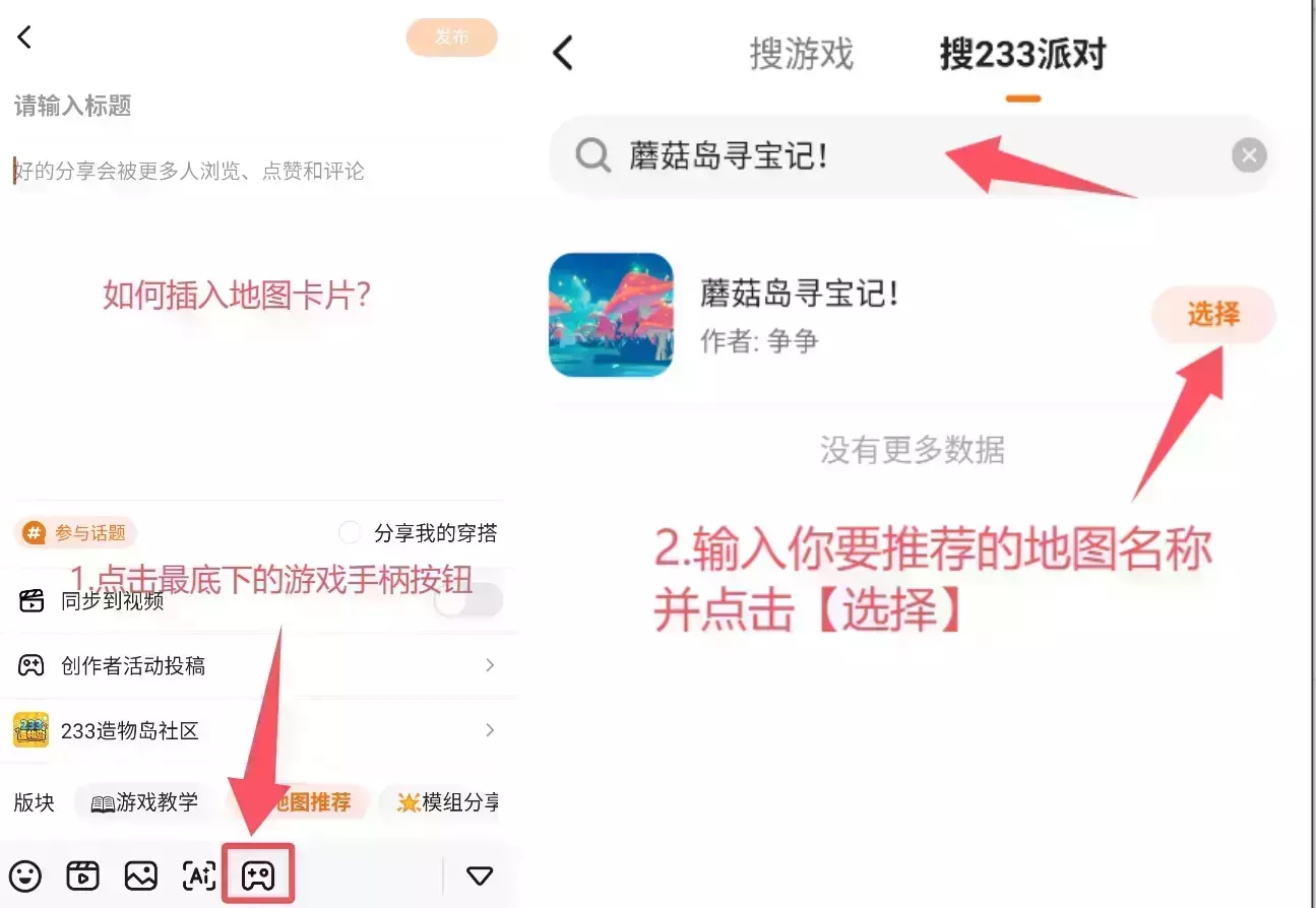 • 帖子发布前,请选择发布的游戏圈是【233造物岛社区】,版块选择【地图推荐】哦!