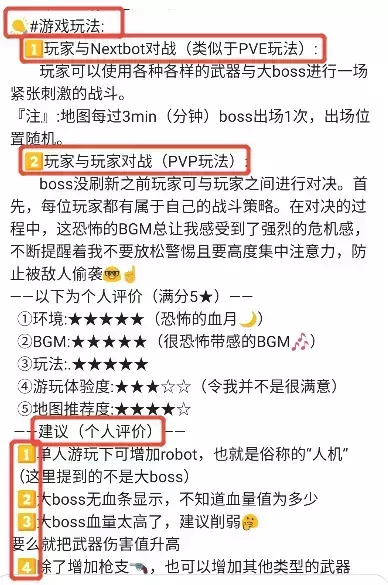 可以从地图体验指数、游玩感受、地图内容、个人建议,或者从地图优缺点、地图创意度、可玩性、背景音乐等各个方面来进行评价!