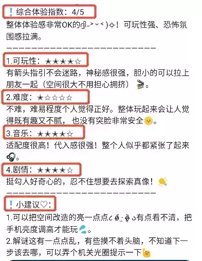 如:🙋游玩体验:xxxxx(输入评价内容)