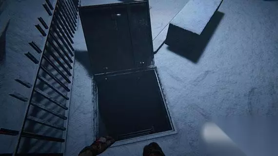 打开门以后顺着楼梯往下走,你的身后突然会出现之前的那种触手怪。赶紧往下跑,开了门以后来到室外,怪物就不会继续再追了。 出来以后仔细看地上,你会发现有两个井盖,其中一个是堵死的,里面有绷带。