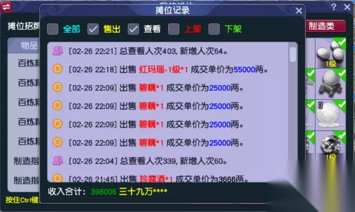 副本结束后,出来在长安的琵琶胡姬处,看到有个人收碧藕。 试了下价,竟只给1W,真够黑心的。 我虽然不太了解新区物价。 但我知道,新区等级低,每天可以修法宝的次数少。想快速修法宝,对碧藕的需求是很高的,按理说价格应该不低。 于是自己摆摊卖,按老区的价格,2.5W上架,秒没。
