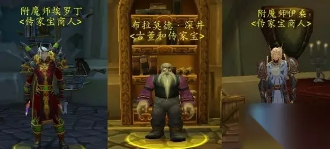 英雄纹章、岩石守卫者的碎片和卡鲁亚克钓鱼大赛。达拉然共有三名传家宝商人,联盟在银色领地找“附魔师伊桑”;部落在夺日者圣殿找“附魔师埃罗丁”。 英雄纹章、岩石守卫者的碎片和卡鲁亚克钓鱼大赛。达拉然共有三名传家宝商人,联盟在银色领地找“附魔师伊桑”;部落在夺日者圣殿找“附魔师埃罗丁”;中立的“布拉莫德·深井“在摩尔珍品店,当己方阵营占领冬拥湖并拥有“冬拥湖的精华”BUFF时,可以找冬拥堡垒里的NPC使用岩石守卫者的碎片兑换PVP传家宝。 《魔兽世界》巫妖王之怒传家之宝获取攻略 传家宝主要获取方式有三种:英雄纹章、岩石守卫者的碎片和卡鲁亚克钓鱼大赛。这些传家宝均为暴雪游戏通行证绑定,可以邮寄给战网下的小号。经验加成效果可以叠加,最多可获得25%经验加成(任务、杀怪、战场)。 英雄纹章 达拉然共有三名传家宝商人,联盟在银色领地找“附魔师伊桑”(下图蓝圈处);部落在夺日者圣殿找“附魔师埃罗丁”(下图红圈处);中立的“布拉莫德·深井“(下图黄圈处)在摩尔珍品店。