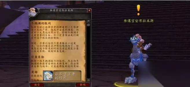岩石守卫者的碎片 当己方阵营占领冬拥湖并拥有“冬拥湖的精华”BUFF时,可以找冬拥堡垒里的NPC使用岩石守卫者的碎片兑换PVP传家宝。以联盟为例,可以找“骑士达米隆”和“塔维斯·德尔”,位置如下图所示。