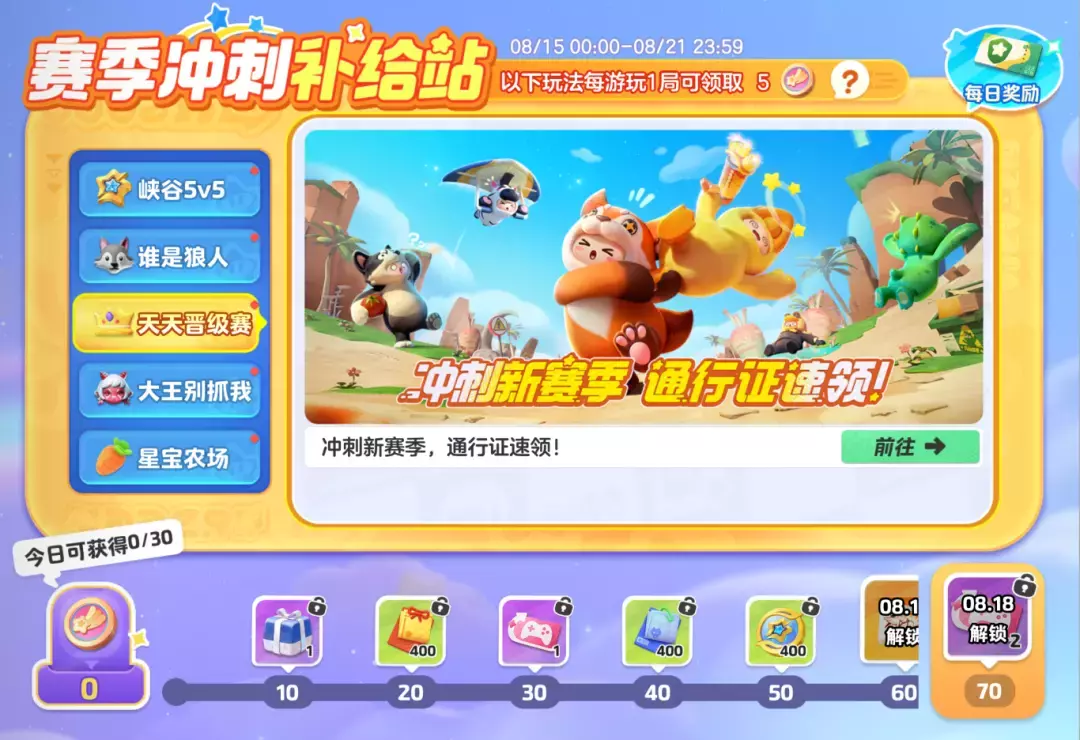 每日登录都能领通用排位保护券