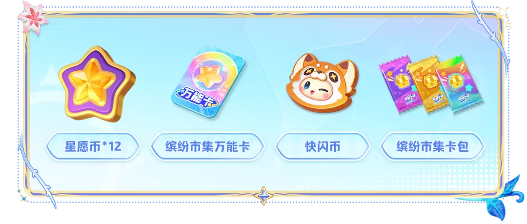 星愿币、缤纷市集万能卡、快闪币