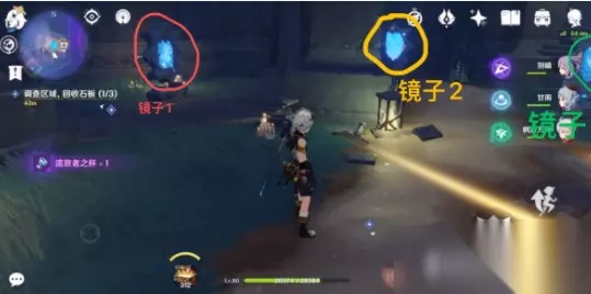 地下镜子解密 1、使用冰元素攻击【镜子1】转化成【冰镜】;