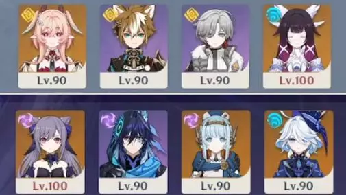 配置: 上半:莉奈娅(1+若水1+穹境4)五郎(6+西风5+教官4)叶洛亚(6+十文字5+纺月4)哥伦比娅(6+夜曲1+晨星4) 下半:刻晴(6+雾切1+如雷4…