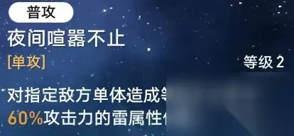 我方单位普攻时,卡芙卡每回合可联动触发一次追加攻击造成不多的直伤以及给敌方单体挂上高额的持续伤害。 4、普攻:夜间喧嚣不止