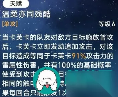 不刚需“效果命中” 终结技充能很快 终结技能引爆所有持续伤害。 3、天赋:温柔亦残酷