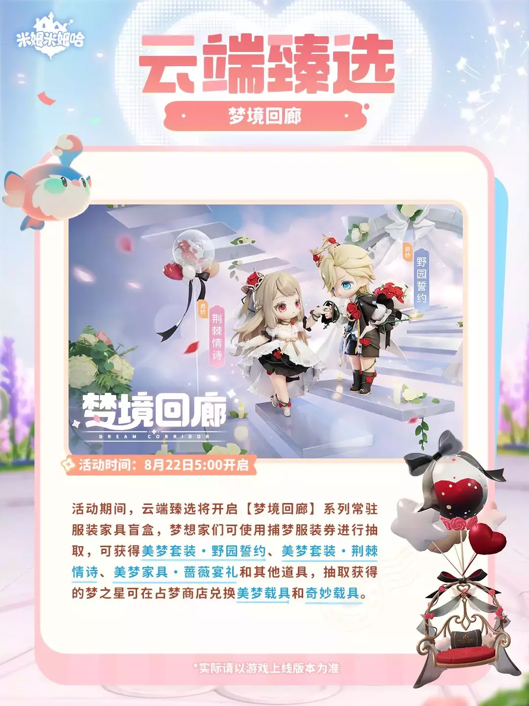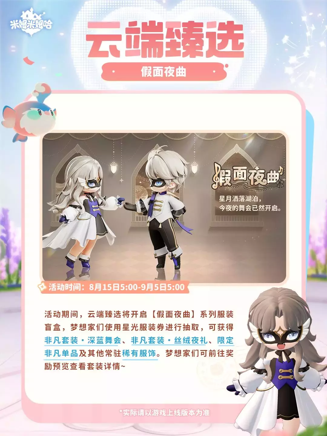 同时还有「梦境回廊」常驻服装家具臻选、「盛夏光菠」主题时装&家具、铃兰系列主题时装等超多外观、家具资源上新!