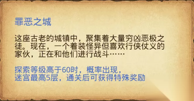 【出战选择】 1、副系天赋消耗是主系两倍,因此建议魔法系出战 2、神灯是主线产出,极易满星,魔法少年是金罐产出,对平民不友好,推荐神灯出战 3、经由分析,得知探索点比属性更难达标,推荐竖琴+探索点药剂 【阵容替换】 1、神灯是体系核心且门槛极低,不允许替换 2、没有魔法少年的玩家可以选择全清挣取更多探索点,这样探索总是够点大地的 3、没有二哈的玩家可以选择链接正义使者,能为你的用脸刷怪提供回复 四、速刷流程 1、进入天空玩法,点击”天空物资“——”舰长日记“——“完成副本”,找到副本“罪恶之城” 2、花费5点能量,回溯副本“罪恶之城”