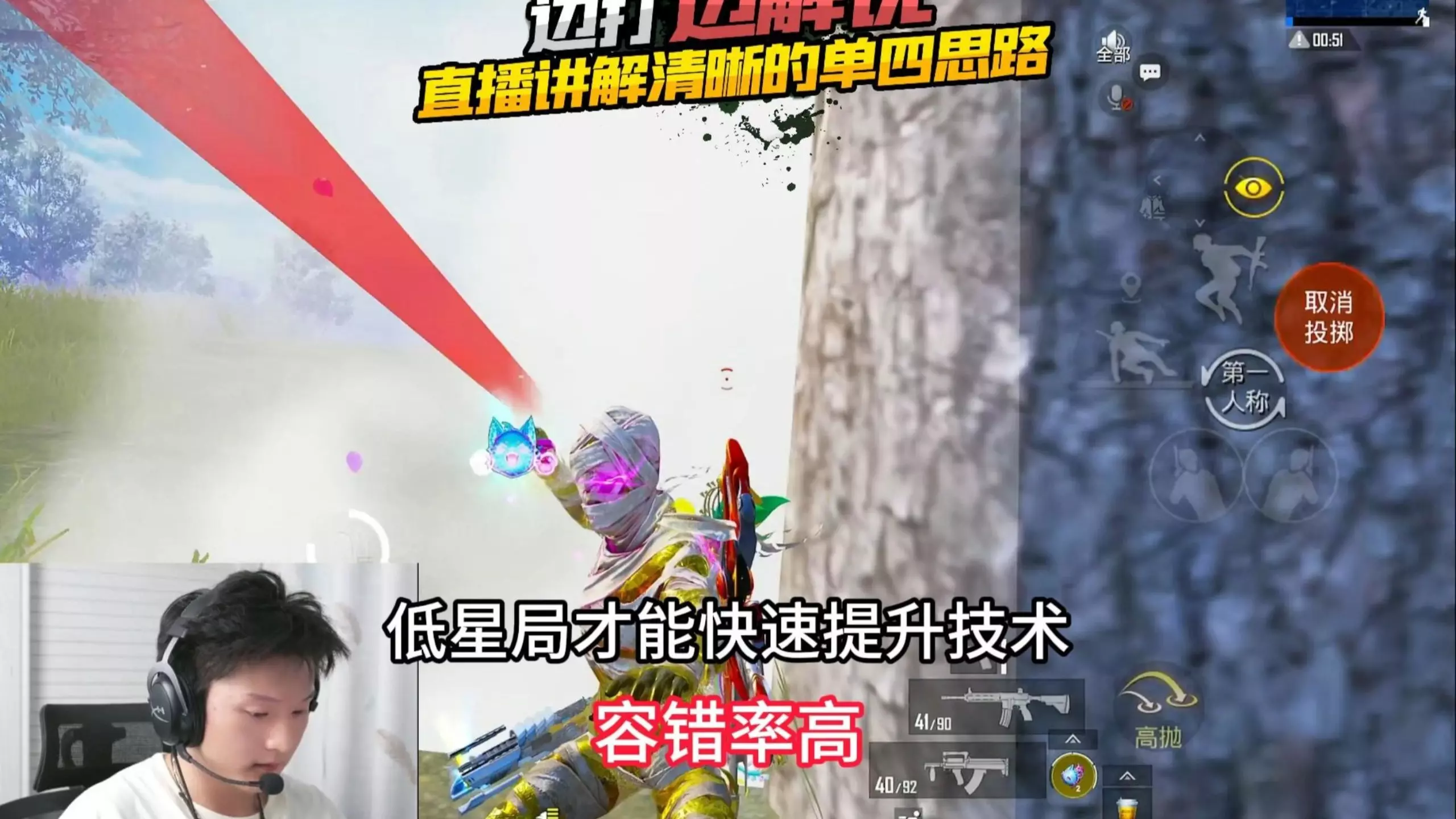 这是《和平精英》的相关内容,主播和全国榜前10的无敌战神进行对掏,该战神拥有9000淘汰分,实力强劲,主播边打边解说,分享清晰的单四思路。