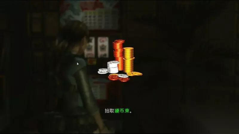 开启赌场后,发现这里一片漆黑,先去楼梯处开启电闸,回复电力,门口需要钱包才能进入,而且要107g黄金,回到中央水池,按下开关,喷出T病毒,书里的鱼变成怪物,干掉后获得“钱币”,上去放一下,发现不够,然后去水池左的游戏机,一次能取到大量钱币,按照图片上的输入数量便可以打开赌场办公室大门。