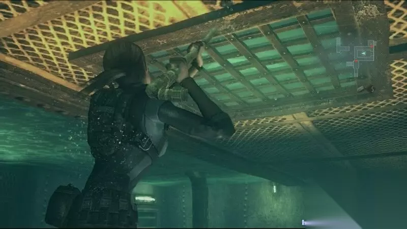 这里还是要看着地图黄色点走,很多破碎的窗户也能游过去,所以门开不开了就试试窗户,最后来到第二次遇到瑞秋的地方,这里跟随克里斯游即可,最后爬上梯子来到实验室门口。