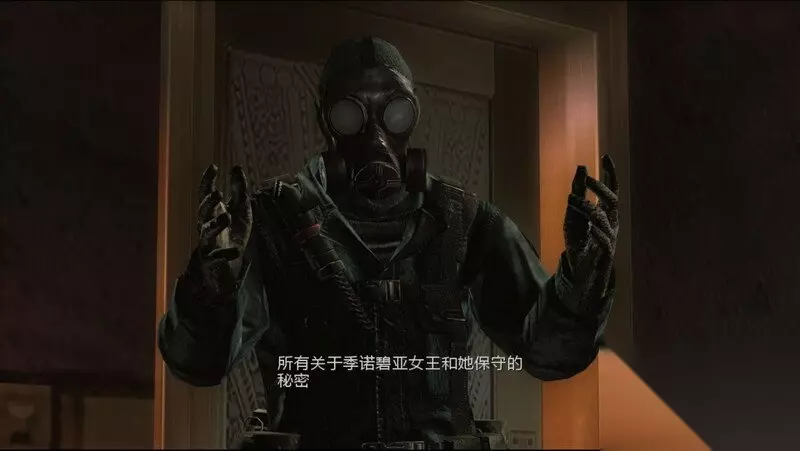 克里斯是假人,对方非常讽刺的在墙上写了几行字来嘲讽吉尔,接着是麻醉气体熏晕了俩人,朦胧中,一个面具人出现,并说是应该让你体验下真相了。