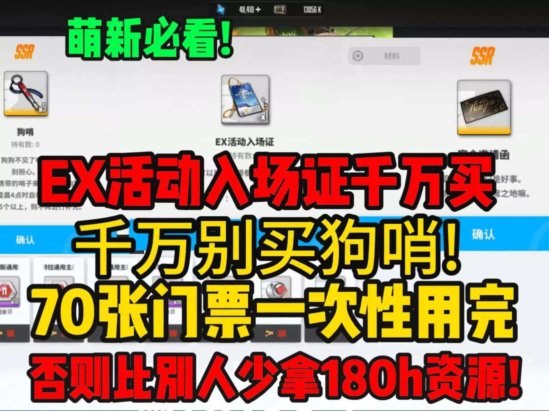 把入场证提前买了!70张门票一次用完,不要留!商店的狗哨等困难模式上了再买,不要着急!