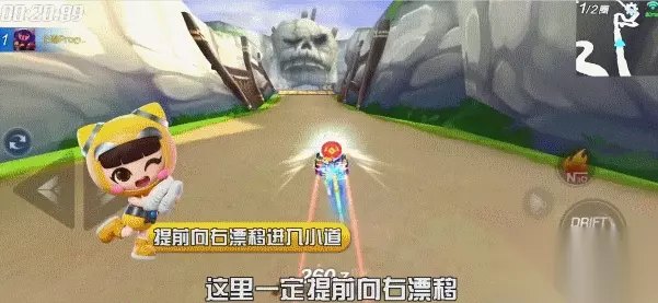 地图难点一 飞跃山沟 有跑过海盗宝藏迷宫的车友都知道,想要进入第一个小道就必须向右漂移飞跃山沟,一般在加速的情况下提前2~3个车位起漂比较合适。落地后需要持续地向右拉车头稳定车身,之后立刻向左拉车头漂移进入山洞,在山洞口时必须提前再向右拉车头,这样才能0失误地进入山洞。 这段小道的组合操作是:右漂进入小道→落地后右漂稳定车身→左漂进入山洞→右漂拉正车头。这一连串的漂移操作不但考验车友的手速,还有临场反应。如果对于自己的车技不太自信的车友,可以在进山洞前点一下刹车,可以有效稳住车头,比起“蹭墙”的速度要快一些。