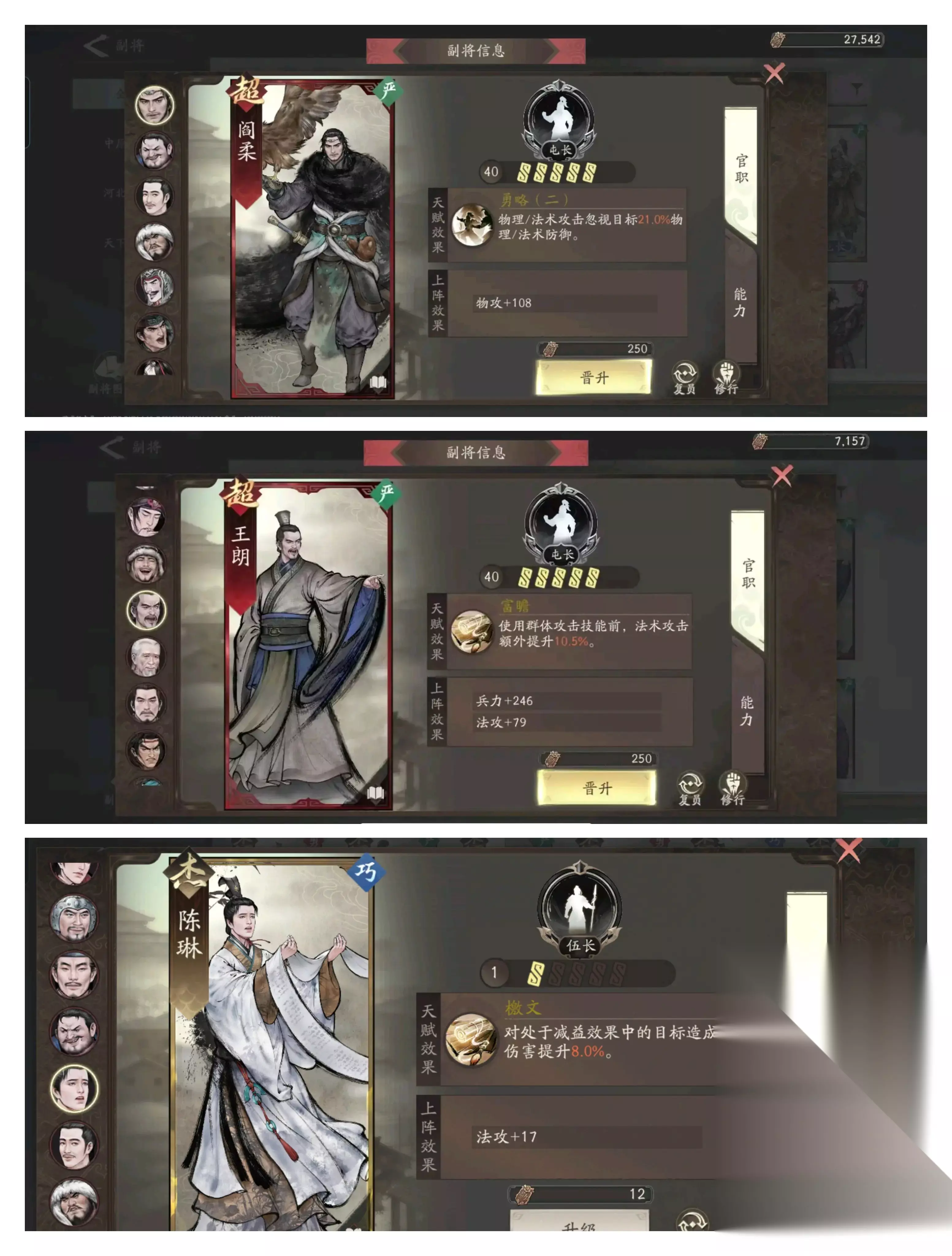 三、团队协同与资源配置 装备选择:原则非常明确,应优先选择能直接增加基础法术攻击力的装备,以最大化其伤害输出。 副将搭配: 在游戏前期,陈琳是郭嘉的完美搭档。其天赋对处于减益状态的敌人有增伤效果,与郭嘉的群攻异常流派形成了完美的化学反应。 到了后期,可以选择面板更优的王朗。在没有更佳选择的情况下,阎柔也可以作为一个备选。