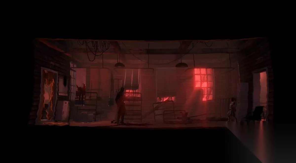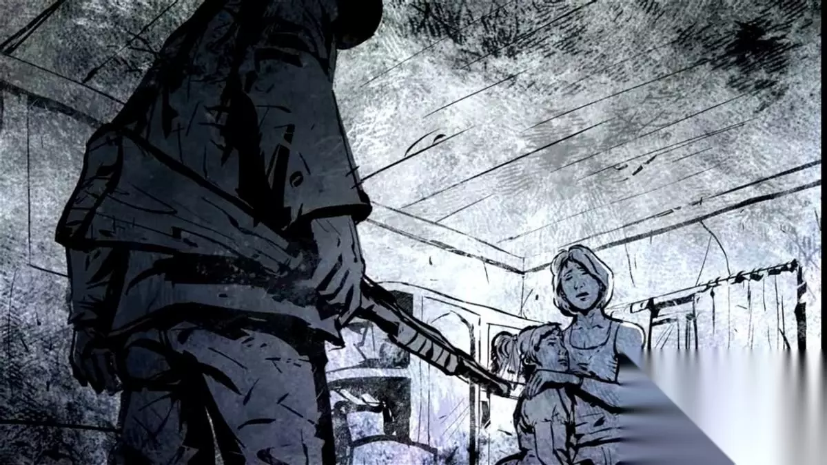 而后男主的大脑启动了自我保护的机制,将这段最痛苦的回忆深深地封锁了起来,并且还捏造出了家人仍然存活着的虚假事实用以自我欺骗。 清醒后的男主不愿重蹈同样的悲剧,他拿起随身携带着的斧头,将木制的地面砸出了一个洞口,并告诉女人永远不要放弃,要珍惜自己的生命,随后将她推入了洞口,而自己则为了拖延时间只身面对丧尸群。
