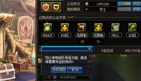 3、点击菜单,找到公会选项,点击公会,点击传送的图标; 4、选择地图,将会出现城镇的地图,选择想要去的地方,点击就可以组队传送了。