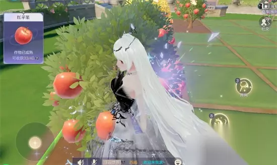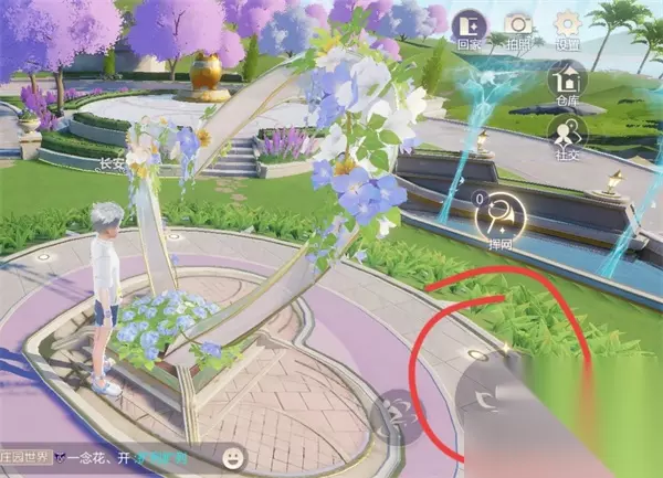 2.祝福值获取(有区榜,可以拿称号) -进入好友的庄园 -走到下图所示的位置,点右下角的花坛