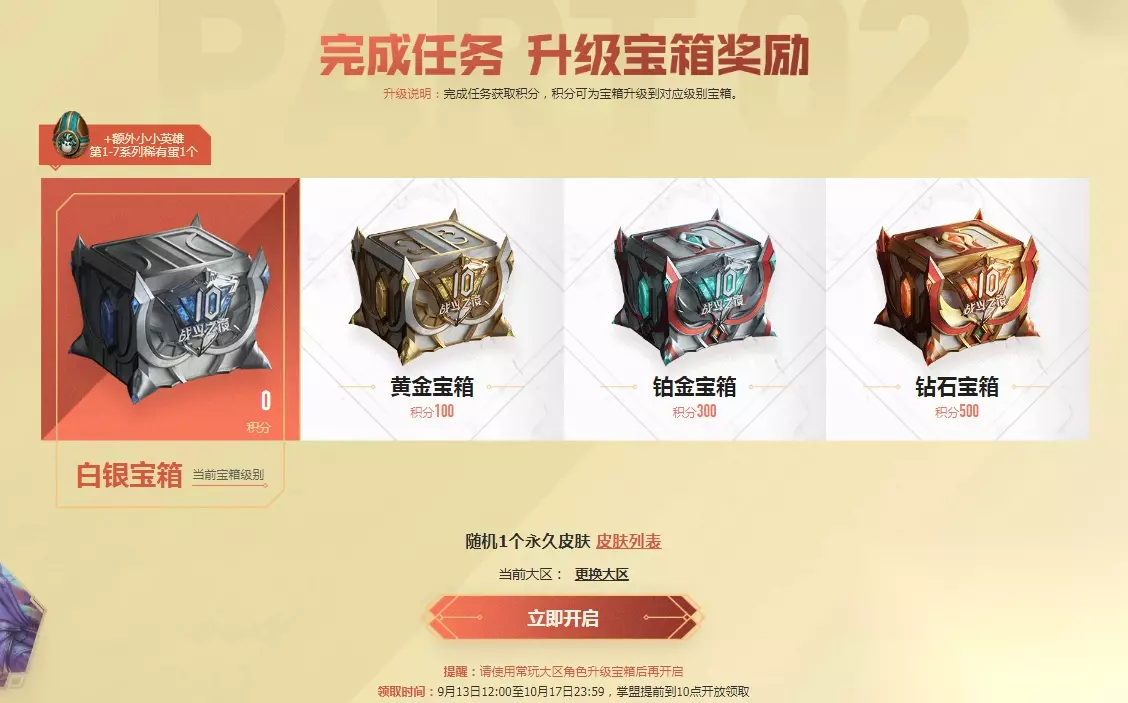 t15_2-t15_1:9.0 标签: 战斗之夜 昨天是英雄联盟的战斗之夜,玩家们要是在昨天进行了一把游戏的话,就能够领取到免费的皮肤奖励了,不过很多人都不太清楚该怎么去领取皮肤吧,那么下面小编就来为大家详细的介绍说明一下领皮肤的方法以及地址吧。 《英雄联盟》战斗之夜皮肤领取方法及网址分享 一、领取地址 10周年战斗之夜地址:点击这里进入 二、领取时间 9月13日12:00至10月17日23:59,掌盟提前到10点开放领取。 三、领取方法 1、登录账号后绑定大区。 2、领取钥匙
