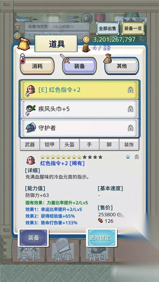 然后新手自带的3件装备千万不要卖了,留着捐赠,否则后期只有帕西那里可以出。然后就是推图,每种不同的装备都可以捐赠一次,获得光珠和黄玉,捐赠到一定次数了还会获得很不错的奖励。推到第二页最后一个图这里,就需要洗练装备属性了,洗出眩晕、中毒、缓慢100%的属性就可以直通30关了。 无限迷宫500层BOSS给终极武器雨,当然,要过图需要血量和HP吸取,要不很难过。当你第一次过了普通关卡,可以搞个吸血装备,那个商人帕西点图标可以挑战他,5000E血量看起来很唬人,但是有吸血还是可以过的,过了送一个极限箱子,所有道具任选一个。关于光珠,前期建议把宠物买满,带4个,然后把1200的几个道具可以买掉。