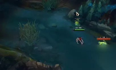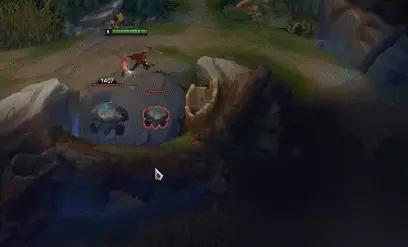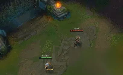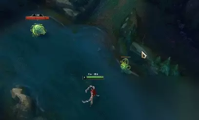 (3)E可以跳敌我双方任意英雄,敌我小兵,野怪,果实,但需要注意的一点是,在有视野的情况下,在大龙坑E可以E到爆炸果实,小龙坑则不行;