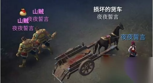 野外会随机刷出山贼抢夺货车,不即时击杀会使货车受损变为破车。 变为破车后获得的奖励只能为保底奖励。 到达目的地后点击NPC可以完成任务。