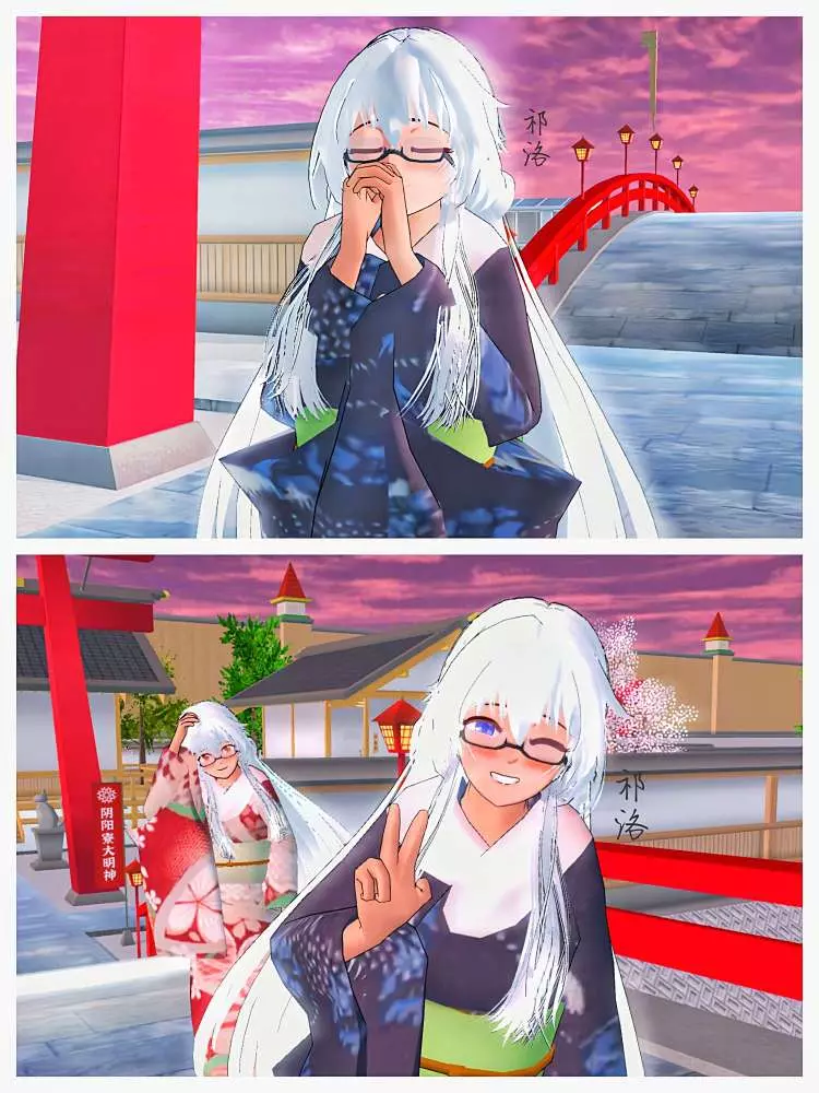 今天放学和诡秘一起来神社参拜啦 我最近的运势真的很差T^T 希望在参拜后可以让我幸运一点但也夹杂着些感谢!