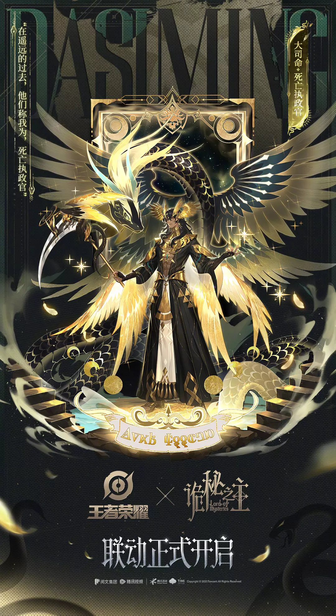 王者荣耀与诡秘之主的联动正式开启,【大司命-死亡执政官】、【弈星-守夜人】两款联动新皮肤现已在游戏内上线,超值礼包千万不要错过哦!