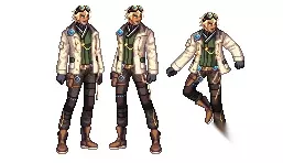 特工看上去还是比较正常的,不过发型和原画严重不符,如果时装有好看的头发的话那么还是不错的,衣服非常的干练。 战线佣兵 战线佣兵→(一次觉醒)战场王牌→(二次觉醒)巅峰狂徒