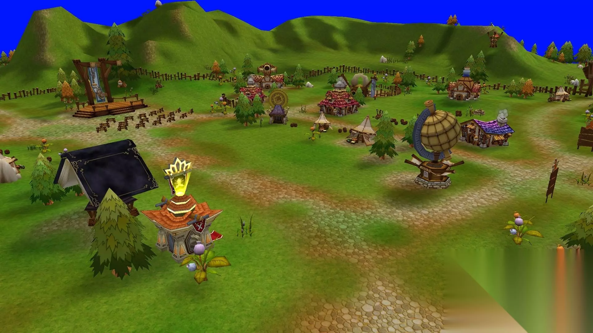 图书馆:很好认,一本巨大的书本盖在房顶上,这里是租借书籍的地方,并且也可以得到一些关于游戏的资料。