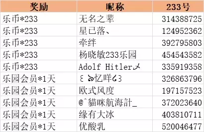🎁随机抽取5位玩家获得233乐币