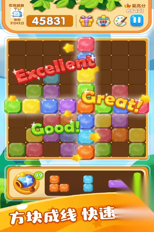 不同于传统方块的四格造型,这款游戏里的块块都是六边形的,拼接起来多了几分灵活与变化。游戏收录了多种好玩的模式。就拿无尽模式来说,屏幕下方会同时给出三个备选的六边形块块,你需要把它们一一拖入宫格中,只要有一行或者一列被完全铺满,这部分块块就会立刻消除。随着游戏进行,宫格里的块块会越堆越多,当三个备选块块都找不到合适的位置放置时,游戏才会结束。《六边形俄罗斯块块》用六边形的独特造型和多样的模式,给经典消除玩法注入了新活力。快来加入这场六边形的消除盛宴吧! 手机扫码下载233乐园APP预约 预约订阅最新动态 优先233乐园APP下载 5、《俄罗斯方块大乱斗》