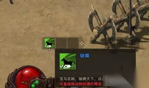 【获得坐骑】 步骤一: 玩家等级达到39级后,会收到屏幕中弹出“骑乘功能开启”的提示框,首次坐骑是默认自动上马状态; 步骤二: 完成任务后,角色为下马状态,在桌面的快捷栏中可点击图标,即可变成上马状态,后续可直接按下对应的快捷键更方便;
