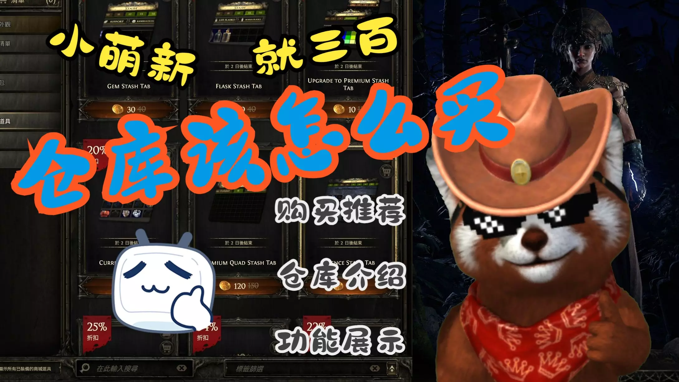 这是一篇面向《流放之路2》萌新的Steam平台打折仓库攻略,介绍了各类打折仓库页的价格、折扣,还讲解了仓库标签页的操作方式,帮助萌新了解该游戏的仓库购买与使用技巧。