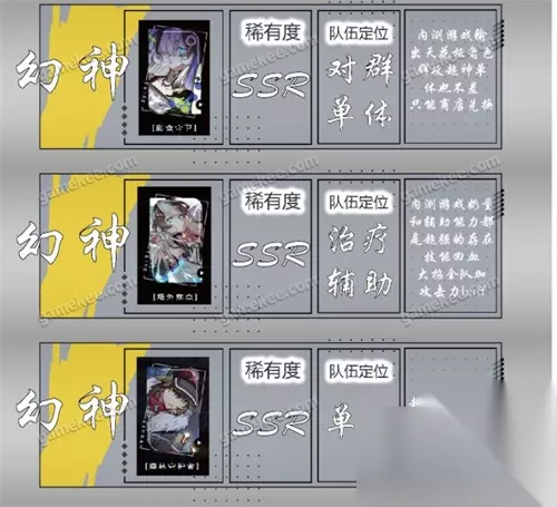 幻神:别问问就是必练。 甜食守卫、场外焦点。森林守护者 T0:超模角色,准幻神级别,抽到必练。