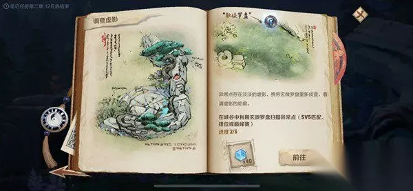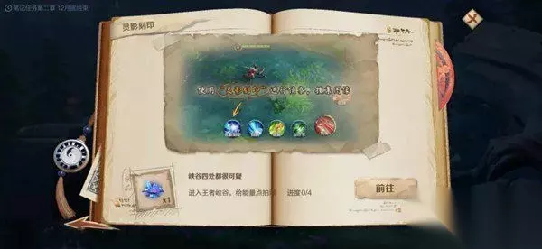 4、我们知道峡谷产生异变的原因很有可能是和原初之息的波动有关的,那么灵影刻印应该就能够感应到这种波动,为玩家指引造成波动的源头。 5、在鬼谷子后续的调查笔记当中,很有可能会继续出现灵影刻印这一关键道具,玩家们也可以记下来,之后应该会用到。 这个要求还是非常清晰的,就是让玩家进入探索峡谷模式,找到特定的异常能量点的位置,